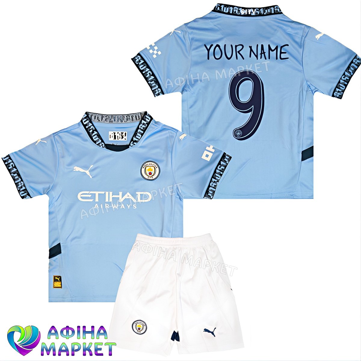 Опис категорії Форма Манчестер Сіті з прізвищем відомих футболістів - для юних гравців від Афіна Маркет