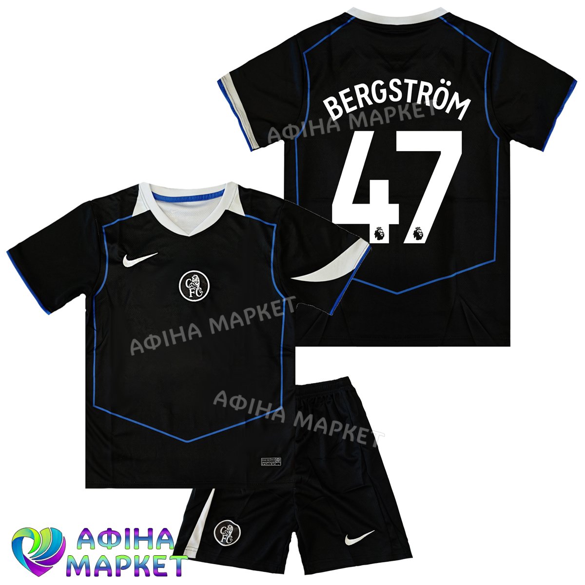 Дитяча футбольна форма Chelsea Лукас Бергстрем BERGSTRÖM 47 Челсі 2025-2026 Nike Third (set4701)