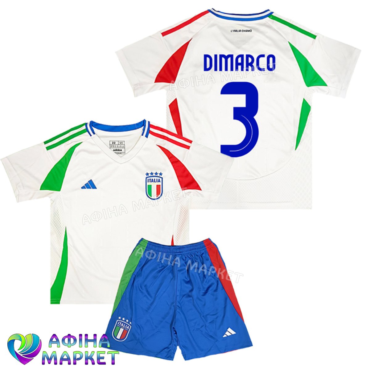 Дитяча футбольна форма Федеріко Дімарко DIMARCO 3 збірної Італії EURO 2024 Italy Away (set3537)