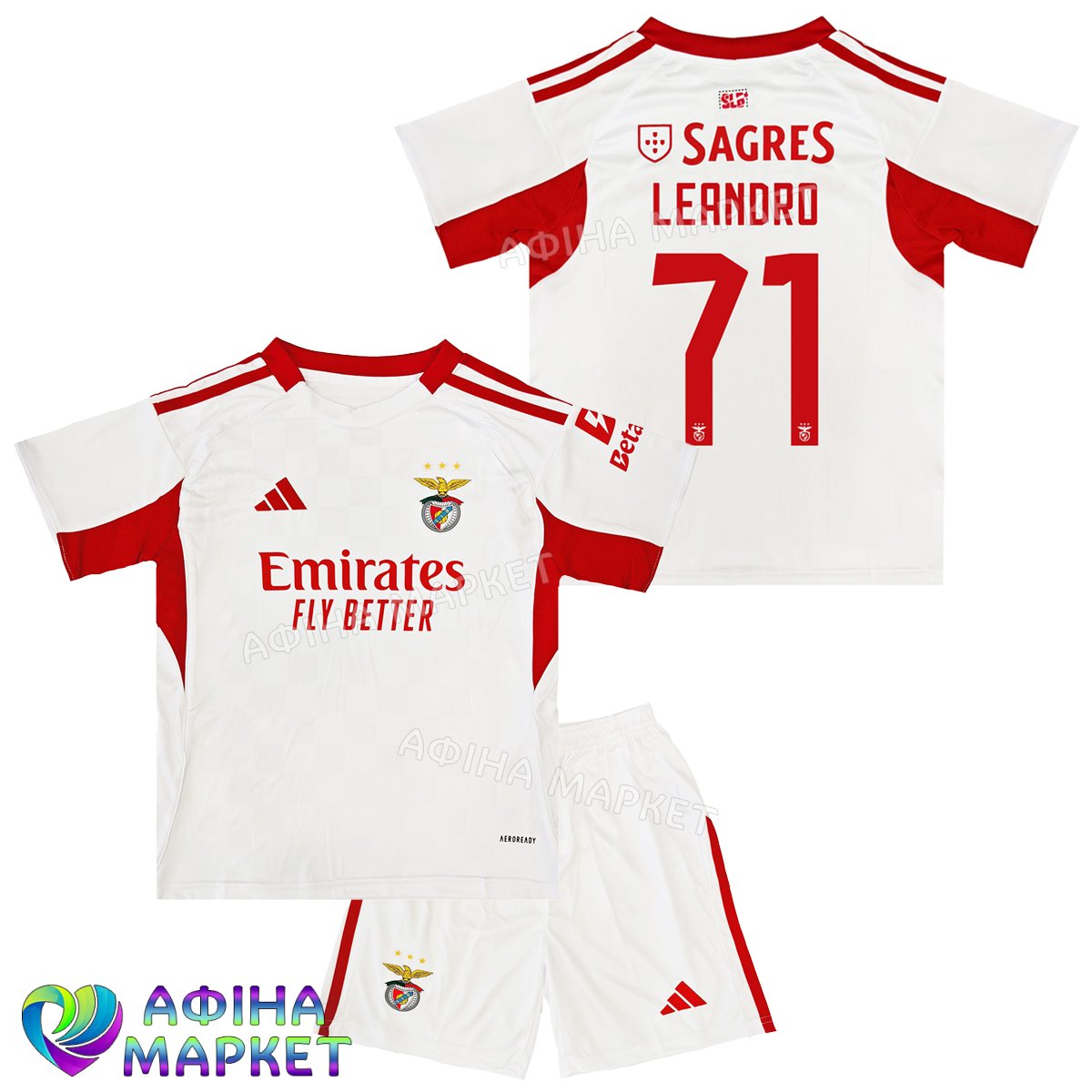 Футбольна форма для дітей Benfica Леандру Сантуш LEANDRO 71 Бенфіка 2026 Adidas Home (set4430)
