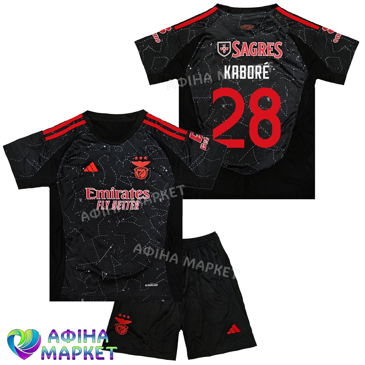 Футбольна форма для дітей Benfica Франк Каборе KABORÉ 28 Бенфіка 2025 Adidas Away (set3900)