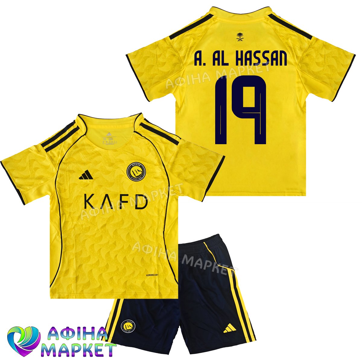 Футбольна форма для дітей Al-Nassr FC Алі Аль Хасан A. AL HASSAN 19 Аль-Наср 2025 Home (set3656)