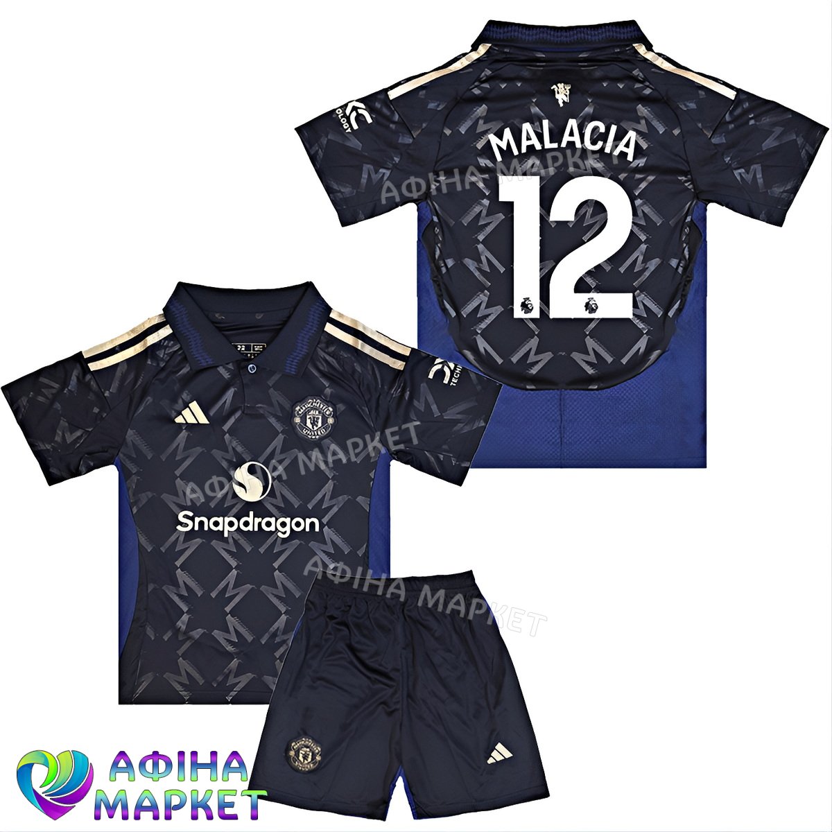 Футбольна форма для дітей Manchester United Тайрелл Маласія MALACIA 12 Манчестер Юнайтед 2024-2025 Adidas Away (set36061)