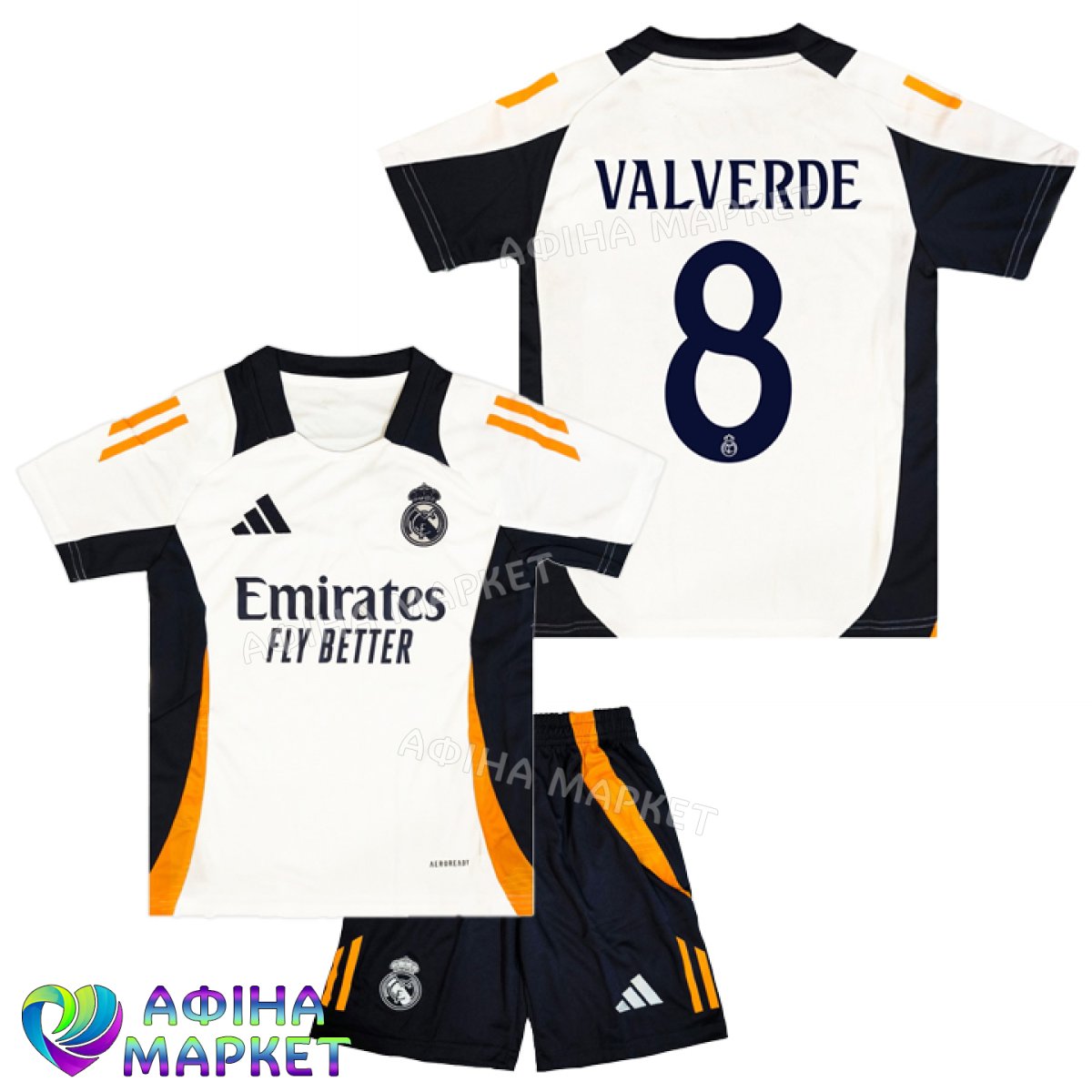 Футбольна форма для дітей Real Madrid Федеріко Вальверде VALVERDE 8 Реал Мадрид 2024-2025 Adidas Away (set3583)