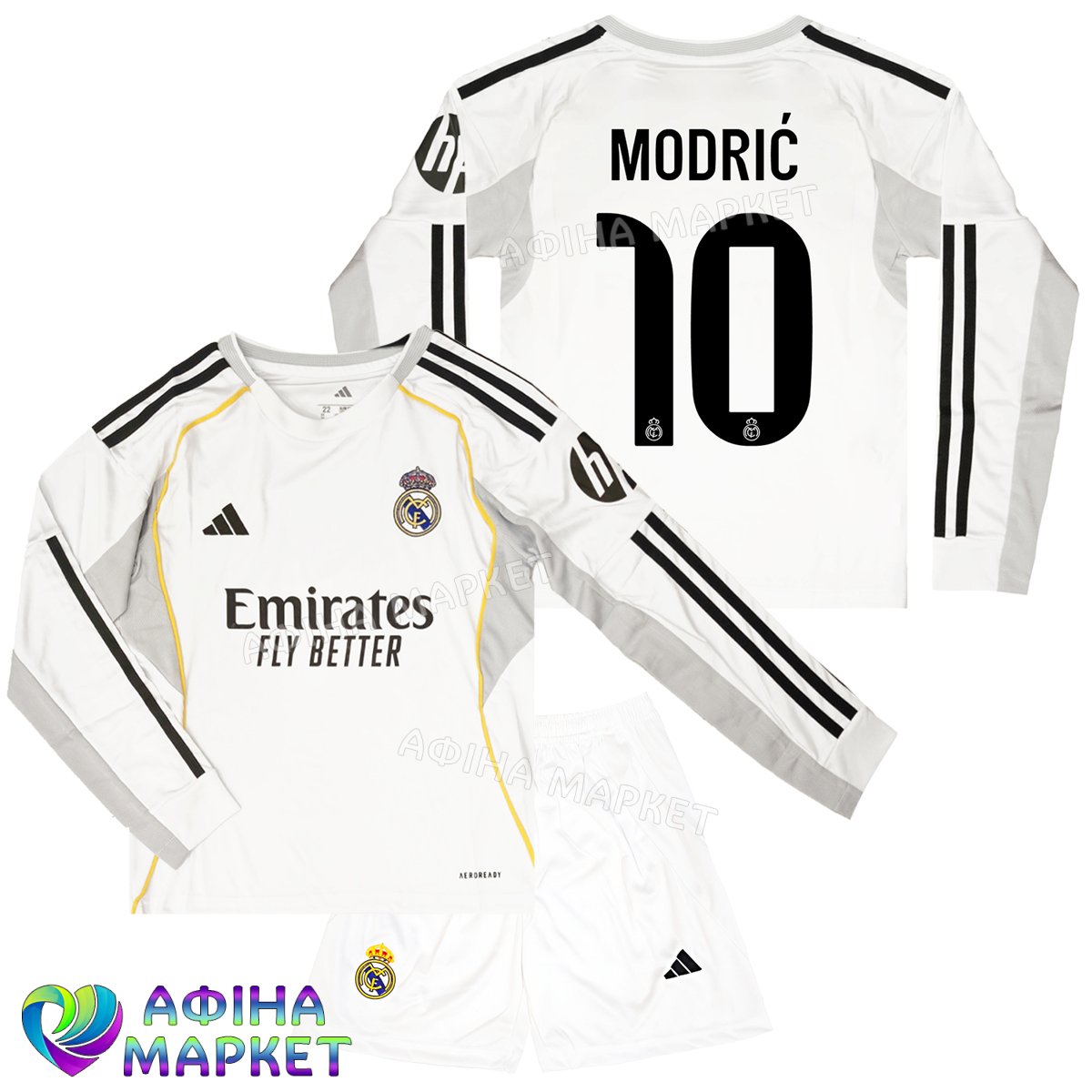 Футбольна форма для дітей Real Madrid Лука Модрич MODRIĆ 10 Реал Мадрид 2025-2026 Home Adidas Long Sleeve (set4717)