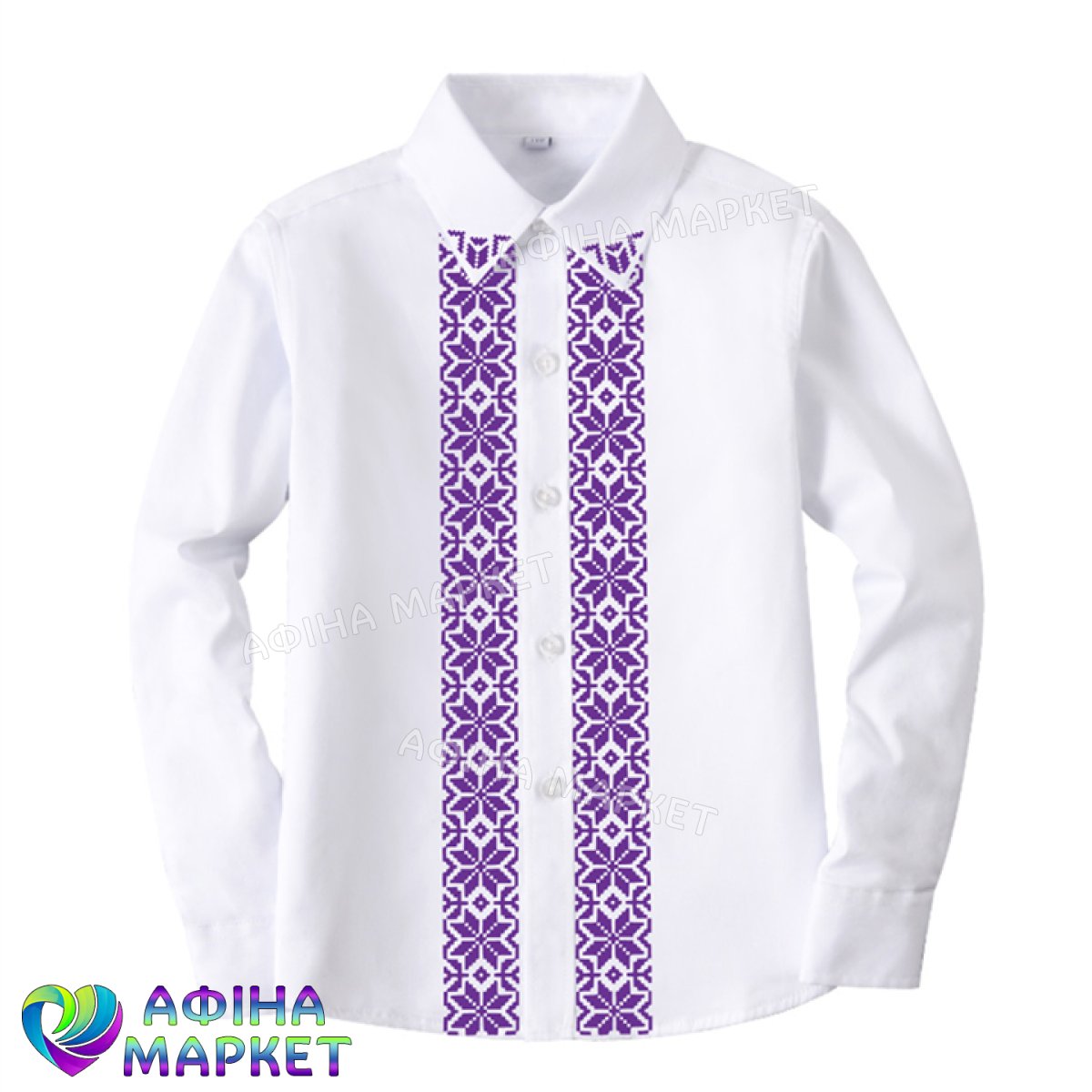 Опис товару Вишиванка для хлопчика Сорочка біла з довгим рукавом фіолетовий орнамент (41031)