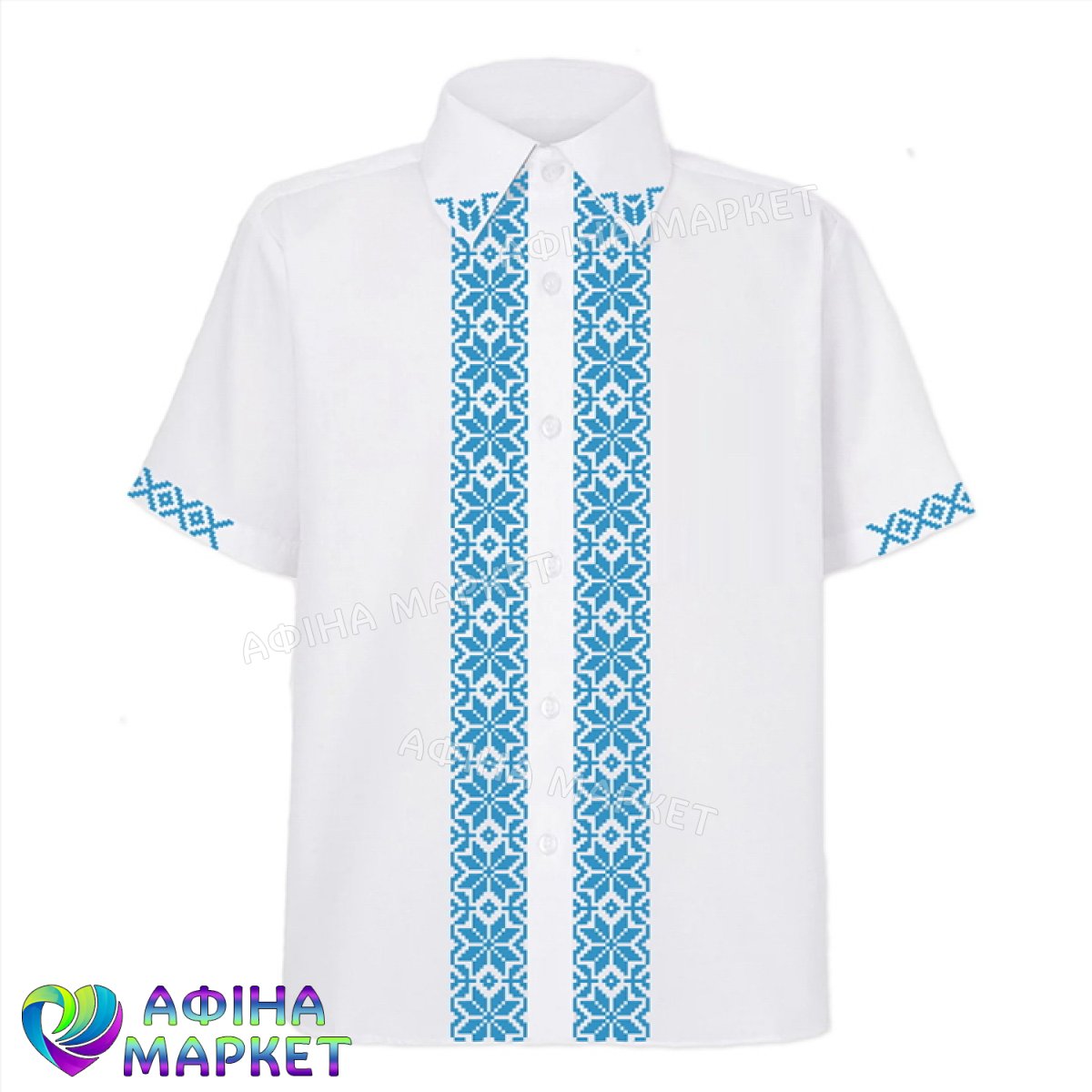 Опис товару Вишиванка для хлопчика Сорочка біла з блакитним орнаментом (4101)